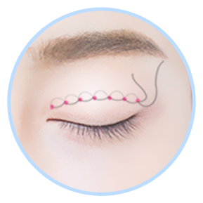 이중 실을 사용하여 라인을 고정하여 쉽게 풀리지 않는 쿨성형외과의원만의 특별한 쌍꺼풀 수술 방법입니다.