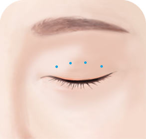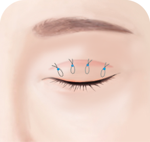 절개를 하지 않고 미세한 몇 개의 포인트를 통해 눈을 뜨는 근육을 교정합니다.