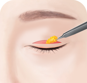 절개를 통해 불필요한 지방과 조직을 제거하고 눈을 뜨는 근육인 상안검거근을 교정합니다.