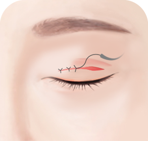 눈꺼풀이 얇고 근육이 적은 경도나 중등도의 안검하수 교정 시 적합한 수술법입니다.