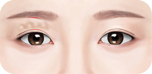 눈 위의 경우 기존의 쌍꺼풀라인이나 쌍꺼풀을 만들면서