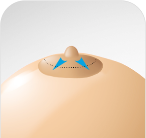 유륜 주위의 경계가 희미하거나 유륜이 심하게 넓은 경우에 바깥쪽의 유륜을 절개하는 방법과